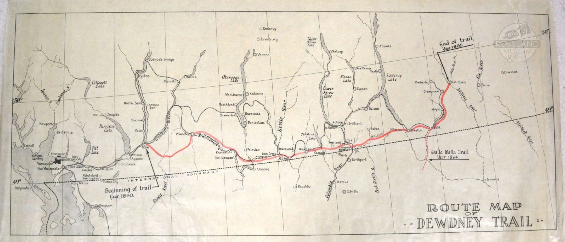 Route Map of the Dewdney Trail. Rossland Museum Collection.