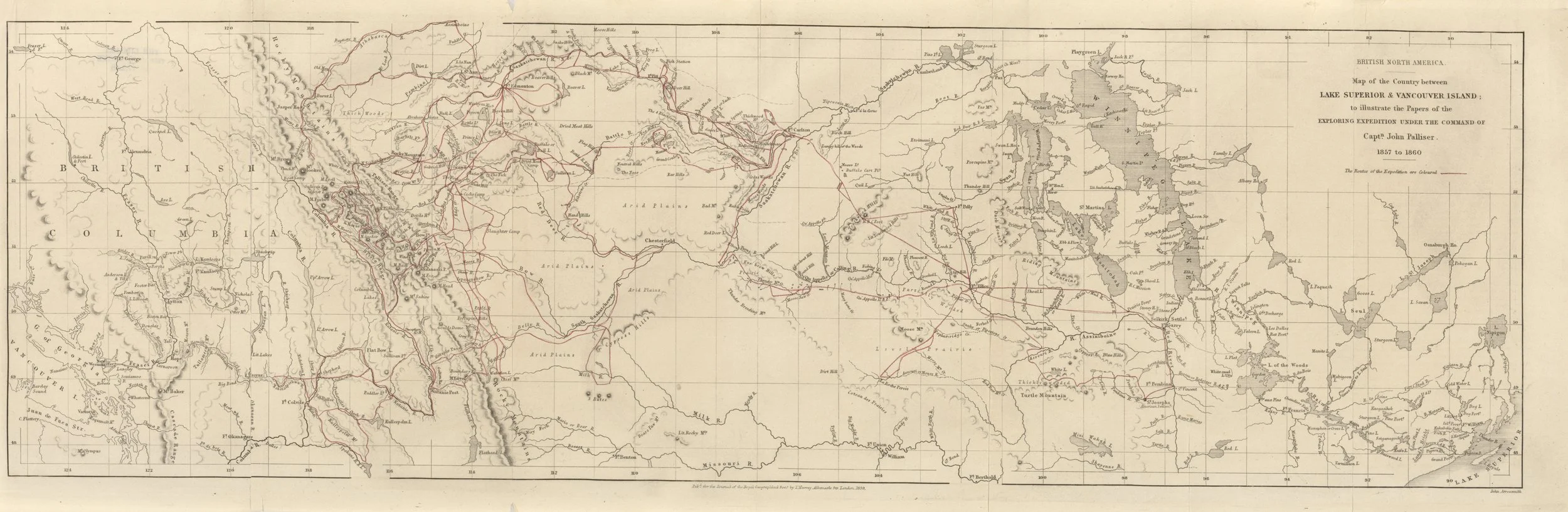 Map of the Palliser Expedition. Courtesy of the University of Texas PCL Map Collection