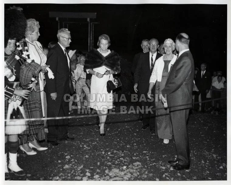 In her capacity as “chatelaine,” wife of the Lieutenant Governor of British Columbia, Phyllis made two official trips to her hometown of Rossland. One was in 1958, and the other was as honourary chairperson of the Rossland Historical Museum Association where she turned the first sod for our museum building. She came again in 1967 and cut the ribbon at the opening ceremony of the museum.
