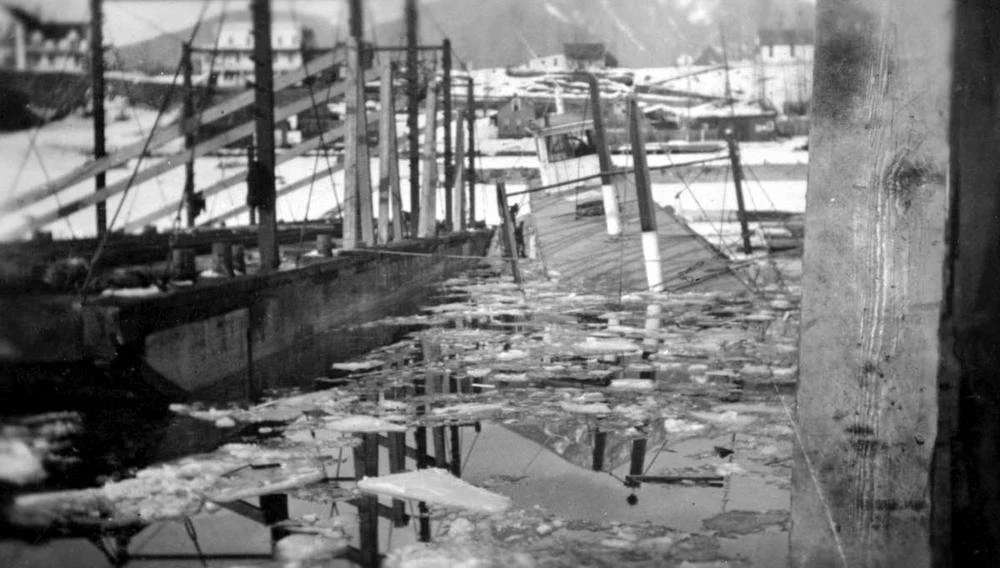 On January 25, 1917, Rossland’s storied career was brought to an end. While moored at the CPR shipyard in Nakusp, where she had been since 1916, Rossland sank due to an overload of ice and snow. The immense weight caused the ship to tilt on her port side and become submerged by the frigid water. Rossland’s watchman was on board at the time, but escaped without injury. In March 1917, Rossland was raised from the water and an attempt was made to salvage the vessel––to no avail. Albert Forslund, her former captain, allegedly purchased the hull and used it as a wharf at his nearby property.