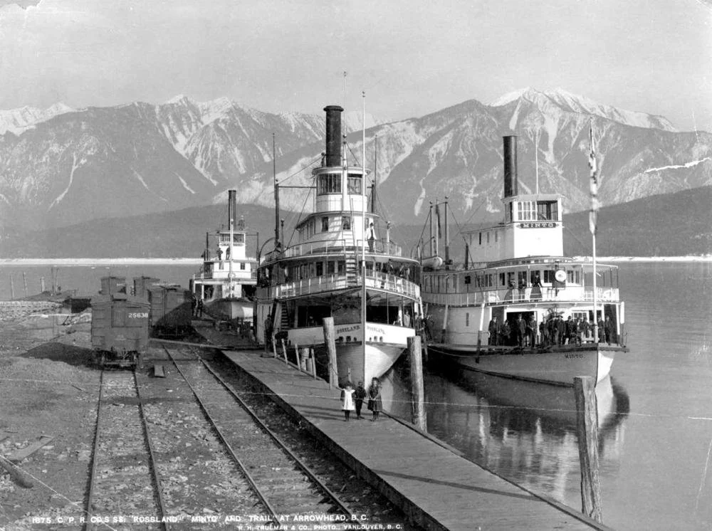 Sternwheelers were introduced to the West Kootenays in the 1880s––providing a welcomed alternative to the rigours of overland travel. Due to their sturdy construction and flat hull, sternwheelers were able to operate in fast-moving, shallow water, making them the perfect vessel to navigate the Arrow Lakes and Columbia River. The Columbia and Kootenay Steam Navigation Company was the first to monopolise the lucrative industry. Founded on December 21, 1889, the company provided a Kootenay-based sternwheeler service until it was purchased by the CPR on February 1, 1897. Upon the purchase, the CPR announced the development of a brand-new fleet. The first vessels constructed by the CPR were Kootenay, Slocan, and Rossland, named, of course, after the local mining districts of the era.