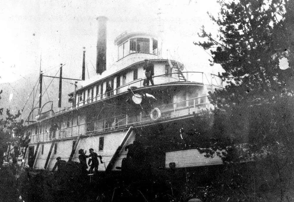 Rossland's career was not without excitement. On August 23, 1899, as the steamer was en route from Arrowhead to Robson, smoke was detected from the upper deck—signalling a fire. As the flames became visible, Captain Albert Forslund beached Rossland at the nearest shore and forced the passengers to disembark. The crew then began to douse the fire with water until it was successfully extinguished. After, the passengers were led back aboard and the vessel steamed forward—only delaying Rossland for a brief period of time. The passengers later wrote a tribute to the ship’s crew in the Nelson Daily Miner, praising them for the “. . .able and effective manner in which Capt. Albert Forslund, Chief Engineer Fyfe, Purser Taylor, and the officers and crew of the S.S. Rossland conducted themselves in combating and extinguishing the fire. . .” Although Rossland survived this incident, other vessels in her fleet were not as lucky. Trail, for example, “burned to the water’s edge” less than one year later on June 1, 1900.